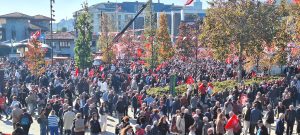 Yarın bu saatlerde bu meydanda hep beraber teröre, şiddetin her türlüsüne inat, yaşam hakkını savunacağız. Beşiktaş meydanda, Barbaros’ta hep birlikte Yaşam Hakkı Mitingi’nde buluşacağız. Türkiye’nin dört bir tarafı bu hafta çok üzüldü. Terörün bir amacı vardı, hepimizi sindirmek. Hem bu mitingimizde sinmeyeceğimizi, korkmadığımızı ve hep birlikte bu meydanda Yaşam Hakkını savunacağımızı ifade etmeye geldik. Ben bugünden İstanbul’a geldim. Hazırlıklar sürüyor. Beşiktaş’ta ilçe başkanımız, belediye başkanımız ve il başkanımızla birlikte, genel başkan yardımcılarımızla, kadın kollarımızla, gençlik kollarımızla birlikte hazırlıkları takip ediyoruz. Yarın burada on binleri, yüz binleri büyük bir coşkuyla yaşam hakkına sahip çıkmaya ve Türkiye’nin geleceğini kuracak, Türkiye’yi yeniden kurtaracak kadroların cesaretine, gücüne güç vermeye hepinizi bekliyoruz.
