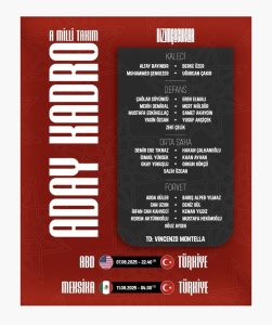 2026 FIFA Dünya Kupası Elemeleri kapsamında ABD ve Meksika ile özel maçta karşılaşacak olan A Milli Takımımızın aday kadrosu belli oldu.