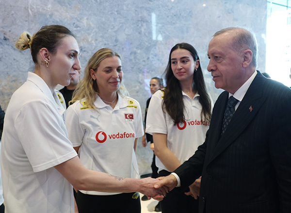 Türk sporuna büyük katkı sağladığını belirten Cumhurbaşkanı, sporcuları ve teknik heyeti tebrik etti.Filenin Sultanları, Cumhurbaşkanımızın maçlarına gösterdiği ilgiden dolayı gurur duyduklarını belirtti. Görüşmenin sonunda Filenin Sultanları, Cumhurbaşkanına milli takım forması hediye etti.